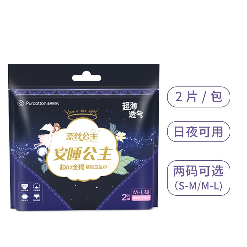 全棉时代奈丝公主卫生巾安心裤裤式姨妈巾(M-L码)2P/袋,进入商品可能弹出11-10券,买2件4.96