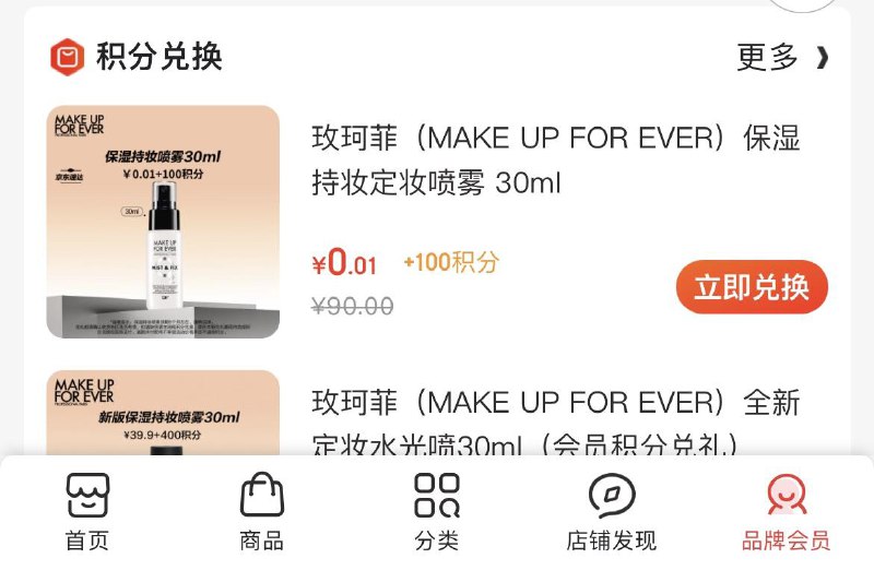 玫珂菲新入会100积分可兑换喷雾 需运费按需