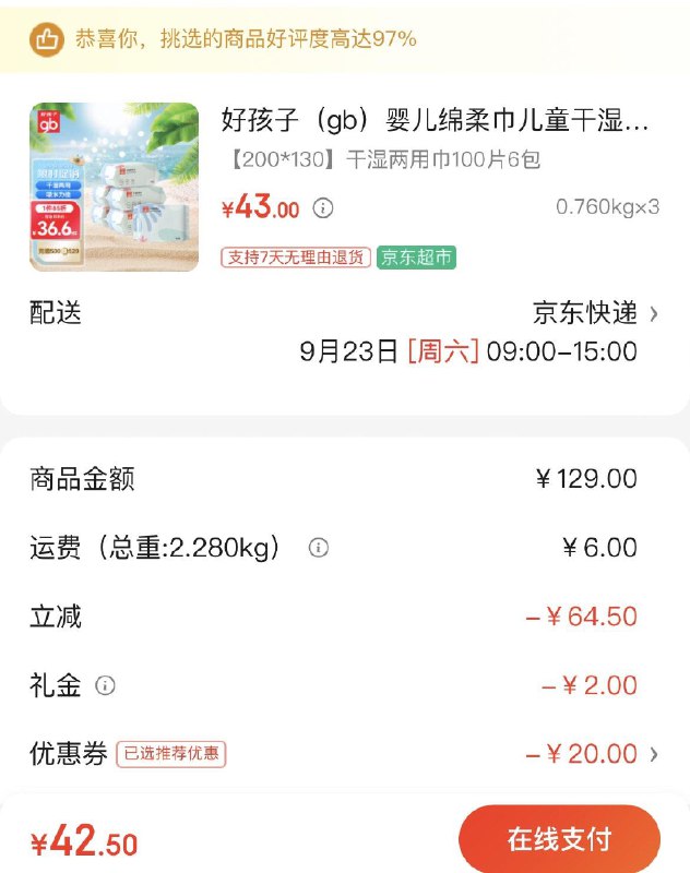 部分地区5折3件42.5亓