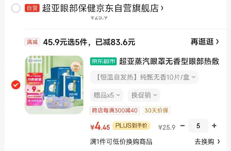 拍5件凑津贴,叠加6-5券,到手5盒17