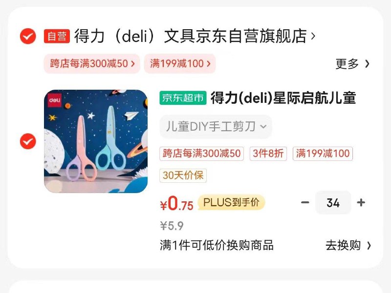 用文具圈199-100拍34件到手25.5亓