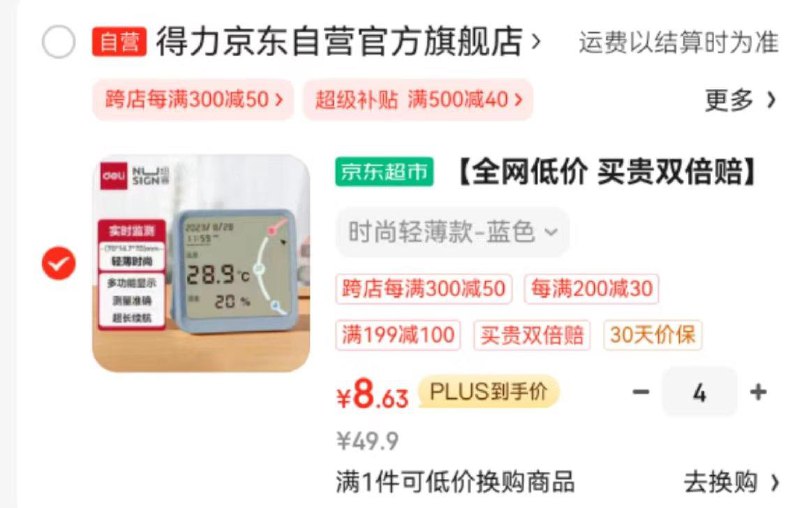 得力deli纽赛轻薄时尚高精度温湿度计