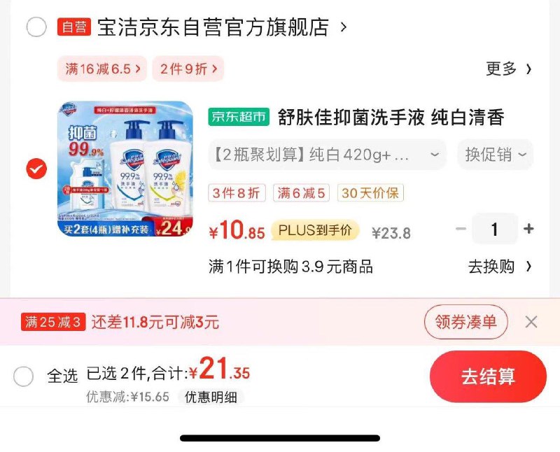 舒肤佳抑菌洗手液 纯白清香420g 柠檬420g
